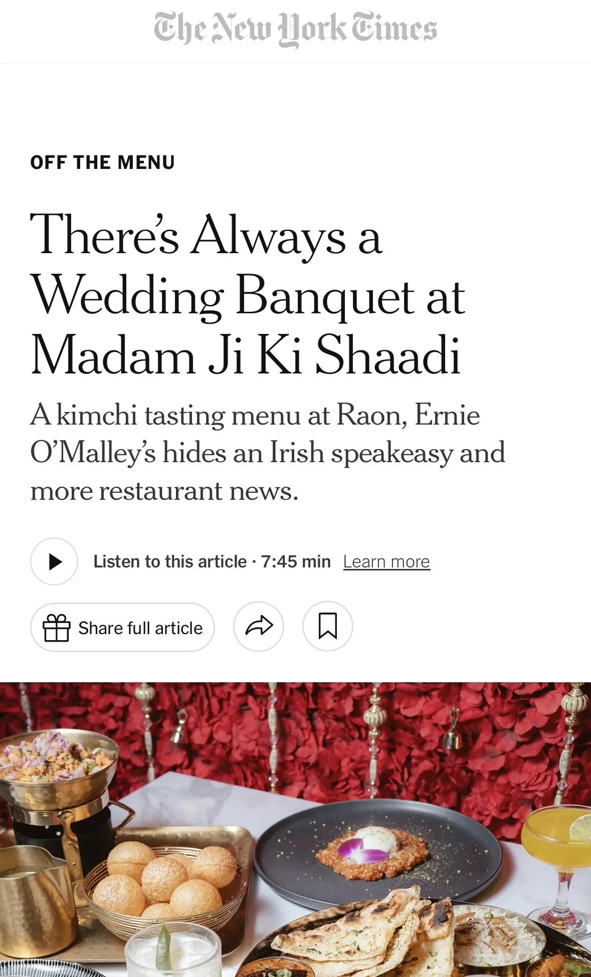 The NEW YORK TIMES: There’s always a wedding banquet at Madam Ji Ki Shaadi